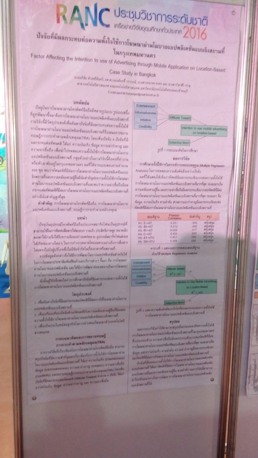 อาจารย์ประจำสาขาวิชาคอมพิวเตอร์ศึกษาเข้าร่วมการนำเสนองานวิจัยแบบโปสเตอร์ในงานประชุมประชุมวิชาการระดับชาติ เครือข่ายอุดมศึกษา RANC 2016