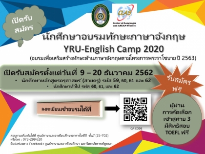 รับสมัครนักศึกษาเข้าร่วมอบรมทักษะภาษาอังกฤษ YRU - English Camp 2020