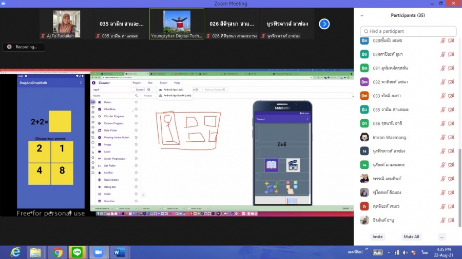 เมื่อวันที่ 15-16 และ 29 สิงหาคม 2564 ทางสาขาวิชาคอมพิวเตอร์ศึกษา ได้จัดอบรมปฏิบัติการ เรื่อง การสร้าง App ด้วย Kodular ให้กับนักศึกษาสาขาวิชาคอมพิวเตอร์ศึกษา ชั้นปีที่ 3 ในรูปแบบออนไลน์ โดยมีวัตถุประสงค์เพื่อพัฒนาทักษะการเขียนโปรแกรมของนักศึกษา และสามารถนำความรู้ไปใช้ประโยชน์ในอนาคตได้
