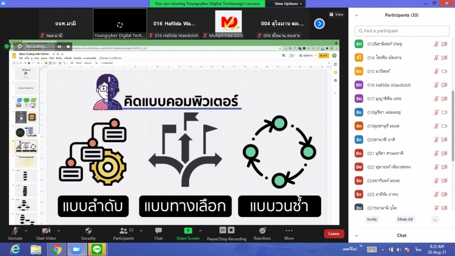 เมื่อวันที่ 28-29 สิงหาคม 2564 ทางสาขาวิชาคอมพิวเตอร์ศึกษา ได้จัดอบรมปฏิบัติการ Python ให้กับนักศึกษาสาขาวิชาคอมพิวเตอร์ศึกษา ชั้นปีที่ 4 ในรูปแบบออนไลน์ โโดยมีวัตถุประสงค์เพื่อพัฒนาสมรรถนะและทักษะวิชาชีพให้แก่นักศึกษา สามารถเขียนโปรแกรมตามยุคสมัยได้ และสามารถนำความรู้ไปใช้ประโยชน์ในอนาคตได้