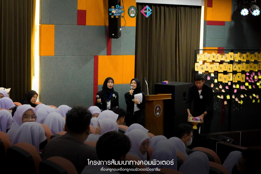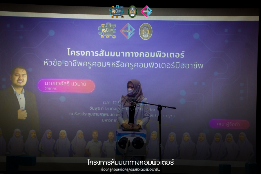 เมื่อวันพุธ ที่ 15 เดือนกุมภาพันธ์ พ.ศ.2566 เวลา 12 : 50 - 16 : 00 น. นักศึกษาชั้นปีที่ 4 (กลุ่ม 2) ได้จัดโครงการสัมมนาทางคอมพิวเตอร์ เรื่อง ครูคอมฯหรือครูคอมพิวเตอร์มืออาชีพ ณ ห้องประชุมฉายภาพยนตร์ ชั้น 1 อาคาร 3 มหาวิทยาลัยราชภัฏยะลา โดยได้เกียรติจาก รองศาสตราจารย์ ดร.ลิลลา อดุลยศาสน์ คณบดีคณะวิทยาศาสตร์เทคโนโลยีและการเกษตร เป็นประธานในพิธีเปิดโครงการ วิทยากรโดย นายแวอัสรี แวมายิ และอาจารย์ที่ปรึกษาที่ปรึกษาโครงการ ผู้ช่วยศาสตราจารย์ ดร.ศิริชัย นามบุรี