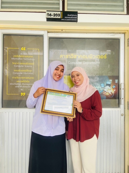 - ผลการใช้แอปพลิเคชันเพื่อการเรียนรู้ เรื่อง การเขียนโปรแกรมด้วยสแครช ในรายวิชาวิทยาการคำนวณ สำหรับนักเรียนชั้นมัธยมศึกษาปีที่ 1 ผู้วิจัย สุมินตรา ซามัน, เพริศพิศ คูหามุข, แวฮาซัน ลีหมะ และฟูไดละห์ ดือมอง #ได้รับรางวัลชนะเลิศ
