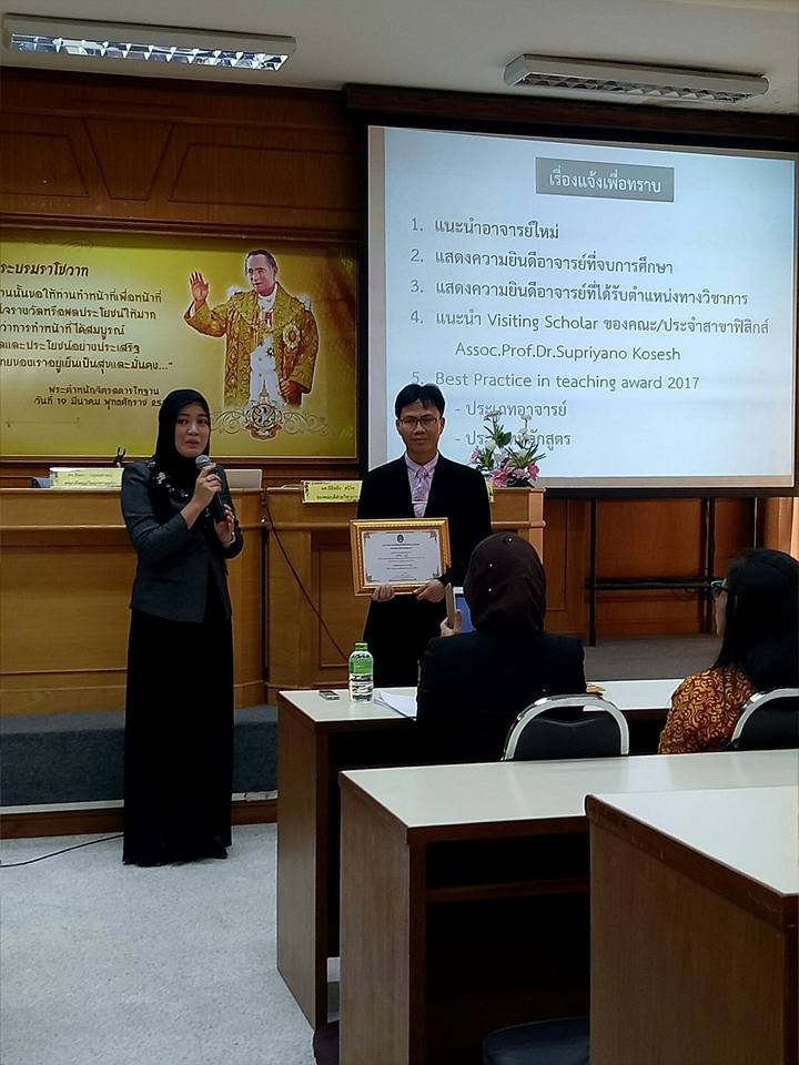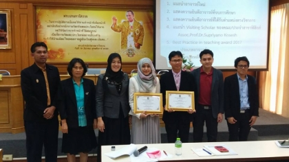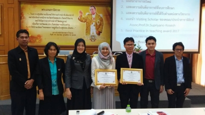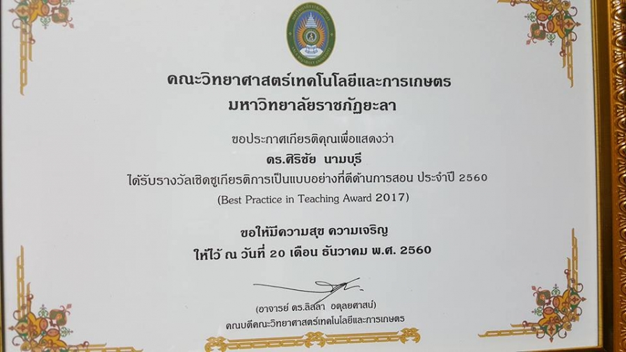 เมื่อวันที่ 20 ธ.ค.2560 คณะวิทยาศาสตร์เทคโนโลยีและการเกษตร มหาวิทยาลัยราชภัฏยะลาได้ทำการมอบรางวัล "Best Practice in Teaching 2017" ประเภทระดับผู้สอนให้กับ ดร.ศิริชัย นามบุรี (http://sirichai.yru.ac.th) และประเภทหลักสูตรให้กับ หลักสูตรคอมพิวเตอร์ (ค.บ.5 ปี) http://science.yru.ac.th/computer ณ ห้องประชุม คณะวิทยาศาสตร์เทคโนโลยีและการเกษตร