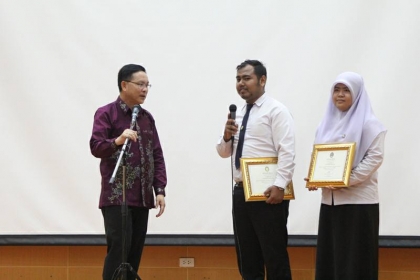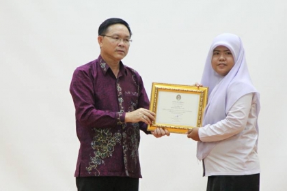 นักศึกษาสาขาคอมพิวเตอร์ศึกษา ได้เข้ารับเกียรติบัตรจากรักษาราชการแทนอธิการบดี ผศ.ดร.สมบัติ โยธาทิพย์ ในฐานะที่สร้างชื่อเสียงให้กับมหาวิทยาลัยในงานเลี้ยงขอบคุณ