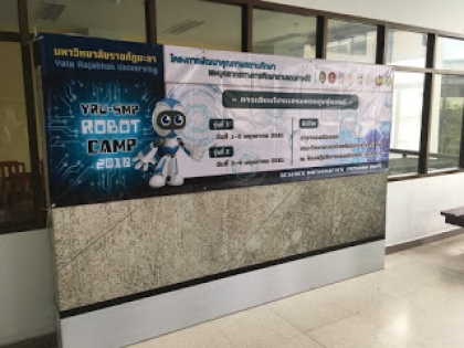 วันที่ 1- 4 พฤษภาคม 2561 โครงการห้องเรียนพิเศษ Science Mathematics Program (SMP) ร่วมกับ สาขาวิชาคอมพิวเตอร์ศึกษา (ค.บ.) และสาขาวิชาวิทยาการคอมพิวเตอร์ คณะวิทยาศาสตร์เทคโนโลยีและการเกษตร มหาวิทยาลัยราชภัฏยะลา จัดกิจกรรมค่ายการเขียนโปรแกรมควบคุมหุ่นยนต์ Robot Camp 2018 ภายใต้โครงการพัฒนาสถานศึกษาและบุคลากรทางการศึกษาชายแดนภาคใต้ ให้กับนักเรียนระดับชั้นมัธยมศึกษาชั้นปีที่ 5 ในโรงเรียนเครือข่ายโครงการ SMP จำนวน 6 โรงเรียน (1)โรงเรียนธรรมวิทยามูลนิธิ (2)โรงเรียนพัฒนาอิสลามวิทยา(3)โรงเรียนสมบูรณ์ศาสน์(4)โรงเรียนมะอาหัดอิสลามียะห์บาลอ(5)โรงเรียนดำรงวิทยา(6)โรงเรียนสุทธิศาสน์วิทยา แบ่งออกเป็น 2 รุ่น วันที่ 1-2 พฤษภาคม 2561 รุ่นที่ 1 วันที่ 3-4 พฤษภาคม 2561 รุ่นที่ 2 ณ ห้องปฏิบัติการคอมพิวเตอร์ อาคาร 6 มหาวิทยาลัยราชภัฏยะลา ได้รับเกียรติจาก อาจารย์ ดร.ศิริชัย นามบุรี รักษาราชการแทน รองอธิการบดีฝ่ายบริหาร เป็นประธานในพิธีเปิด กิจกรรมค่าย การเขียนโปรแกรมควบคุมหุ่นยนต์ Robot Camp 2018 กล่าวรายงานโดย อาจารย์อับดุลเลาะ บากา อาจารย์ประจำหลักสูตรวิทยาการคอมพิวเตอร์ คณะวิทยาศาสตร์เทคโนโลยีและการเกษตร มหาวิทยาลัยราชภัฏยะลา