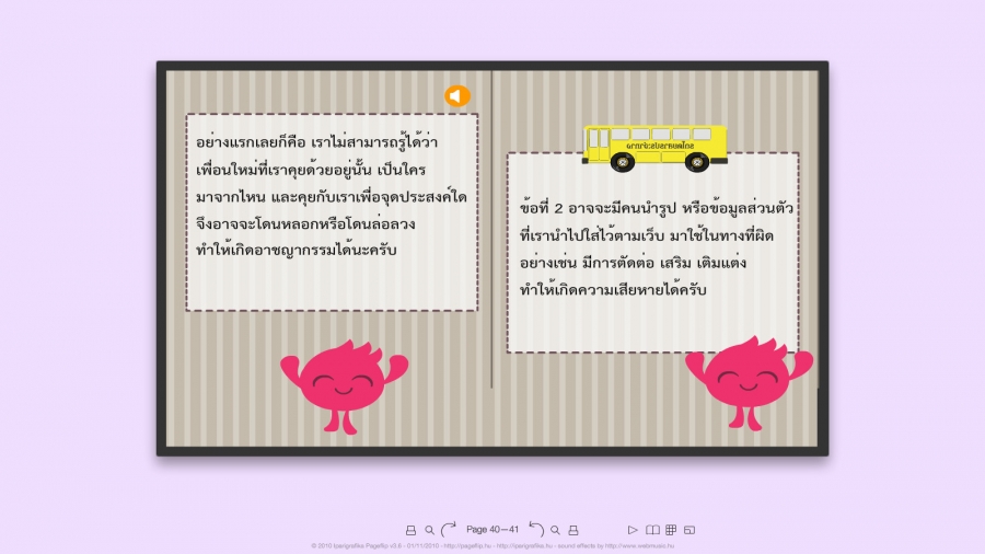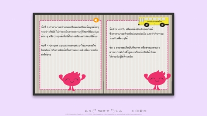 1. การพัฒนาหนังสือนิทานอิเล็กทรอนิกส์เพื่อส่งเสริมคุณธรรมและจริยธรรมในการใช้เทคโนโลยีสารสนเทศสำหรับนักเรียนชั้นมัธยมปีที่ 2 มีจุดเด่นที่มีภาพและขนาดภาพเคลื่อนไหวพร้อมเสียงบรรยายประกอบ